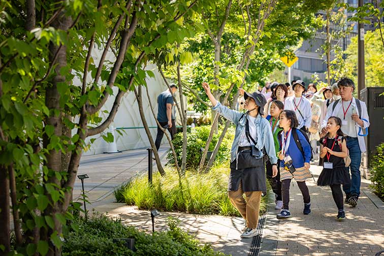 麻布台ヒルズでは、緑の中で心身ともに健康に過ごすための様々なアクティビティを用意しています。