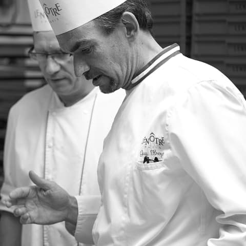 現代フランス菓子の基礎を築いたと言われるガストン・ルノートルが創業したルノートル。 1957年の創業以来、パリの人々に今もなお愛され続けているパリ最高峰のメゾンのひとつです。2006年からクリエーション・ディレクターを務めるギー・クレンザーはM.O.F. (フランス国家最優秀職人章)をシャルキュトリー・トレトゥール、キュイジニエと、 2つの部門で獲得。その技術をベースに、ルノートルでしか表現できないショコラやパティスリーを日々お客様に作り続けています。
