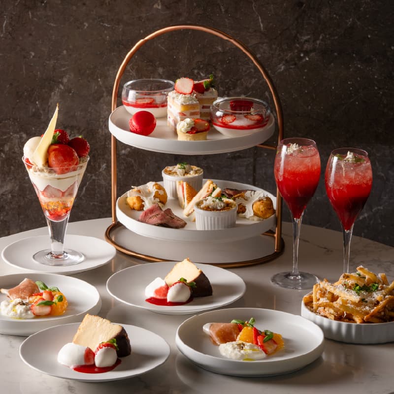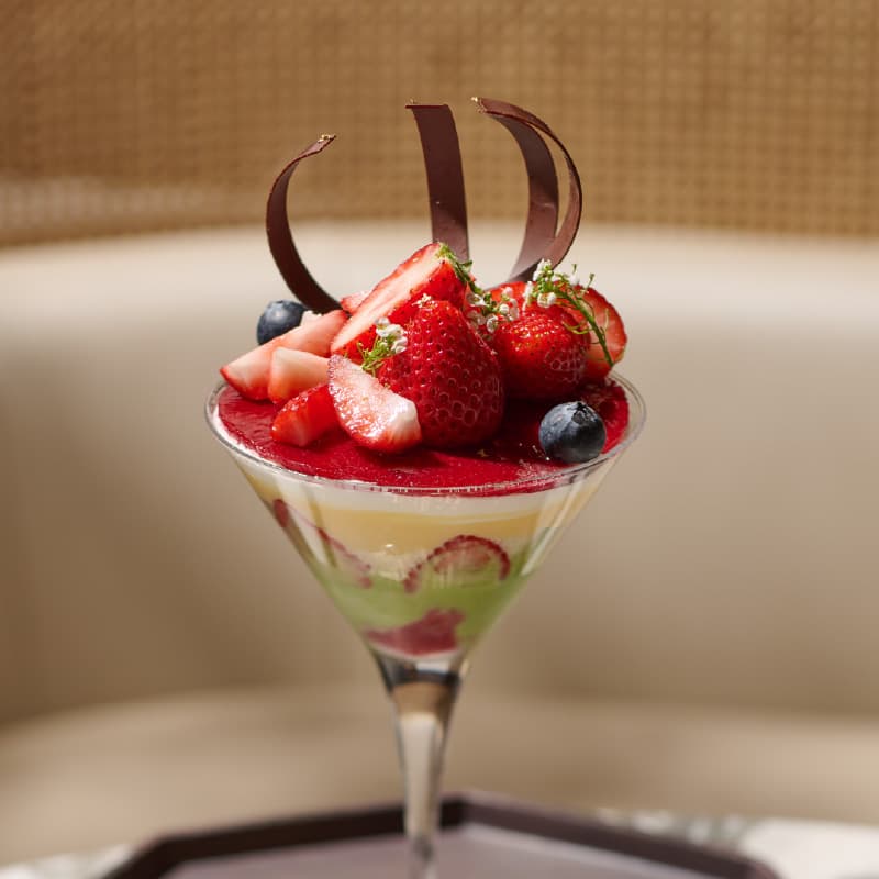 毎年ご好評のバレンタイン限定「ボンボンショコラ」。フレーバーは、パッションフルーツ、ラズベリー、ストロベリーの3種類。いちごの甘酸っぱいフルーティーさを味わっていただきたく、ストロベリーボンボンのフレーバーには、ホテル特製の苺ネクターを使用しています。リボン付きのボックスに入れてご提供いたします。