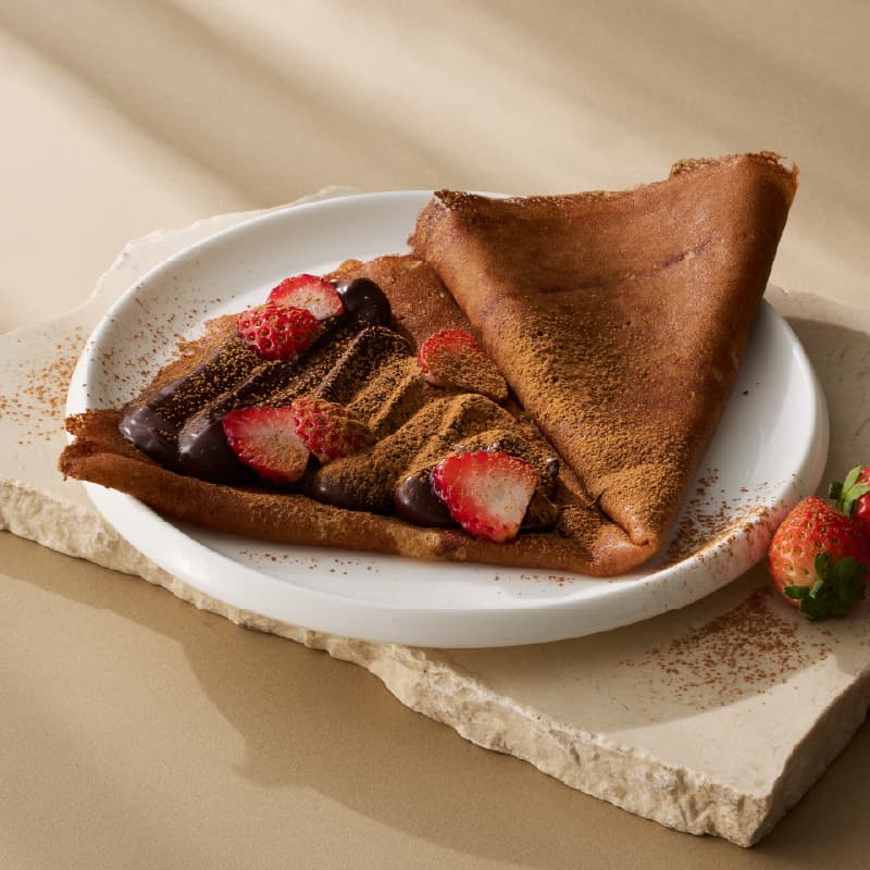 中央広場にあるキオスク(屋台)。LANTERNは「ヘザウィック・スタジオ」によるデザインで、夜はジグザグしたガラス部分に優しい明かりが灯り、中央広場の緑の中でランタンのように浮かび上がります。チョコレートクレープは、濃厚なチョコクリームにシナモンのスパイスとフレッシュいちごのハーモニー。焼きたてをどうぞ。