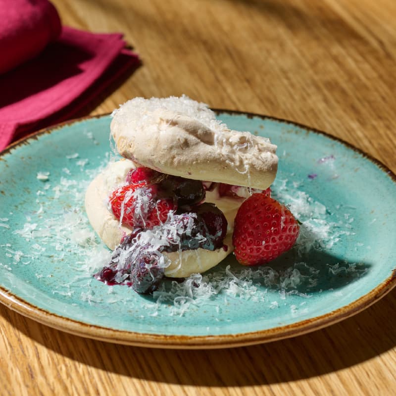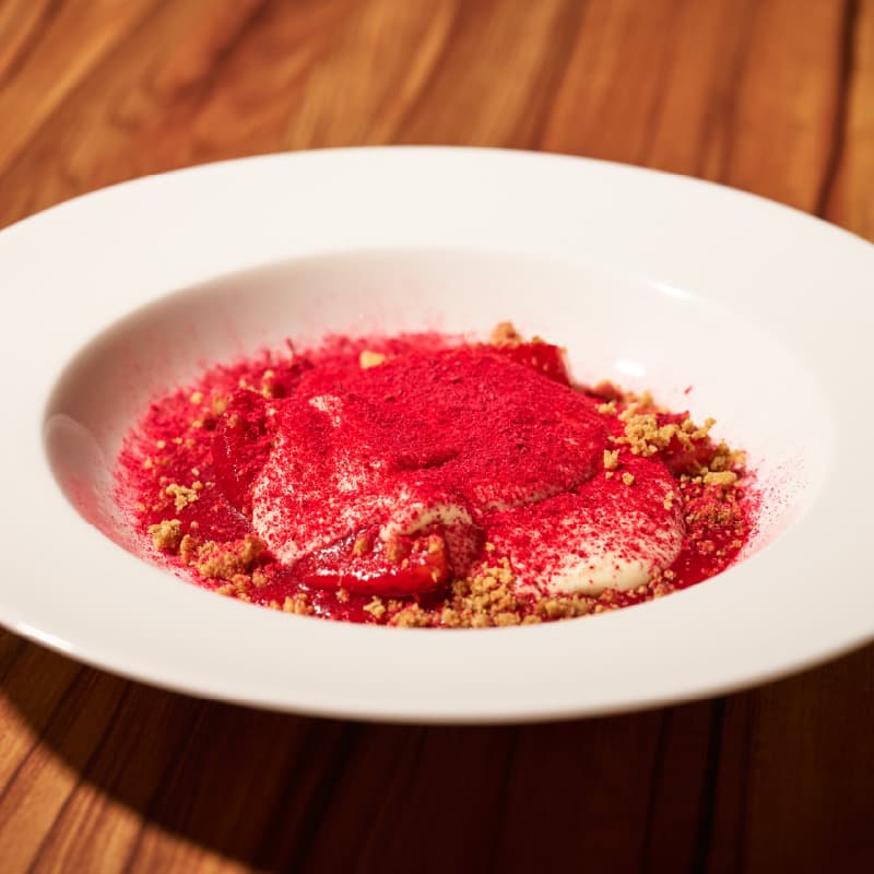 アマレット風味のマスカルポーネをベースに、全粒粉のクランブルで食感にアクセントをプラス。ラズベリーパウダーで甘酸っぱくキュートなティラミスに仕上げました。
