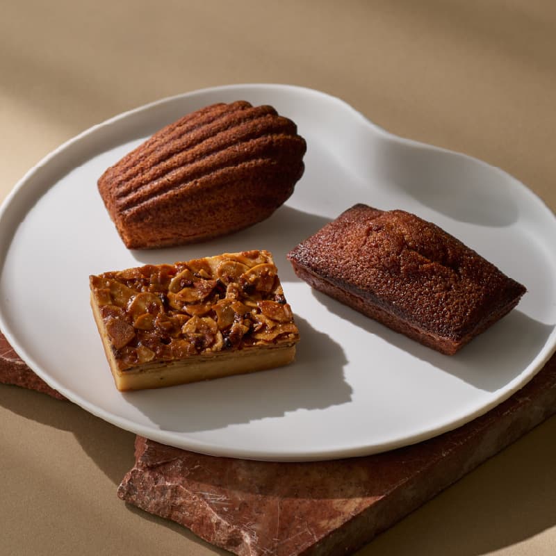 『ニューヨーク・タイムズ』紙のベスト・オブ・ニューヨーク、そしてアジアのベストパティシエにも選出された成田一世が贈るスイーツやパンが楽しめる、スイーツブティック。バターの温度管理と卵の混ぜ具合などを調整し、フレッシュな香りや美味しさを楽しめるように工夫された焼き菓子3種を詰め合わせたセットです。