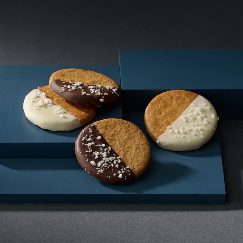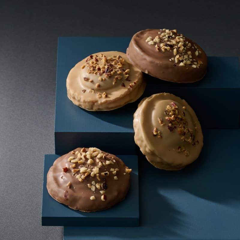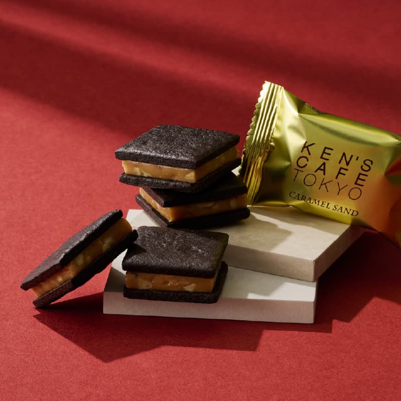 濃厚でなめらかなキャラメルに香ばしくローストしたくるみを絡め、上質なカカオクッキーでサンドしました。ほろ苦いクッキーとキャラメルの上品な甘さが絶妙に調和し、奥行きのある味わいに。お好みのドリンクを併せてお召し上がりください。