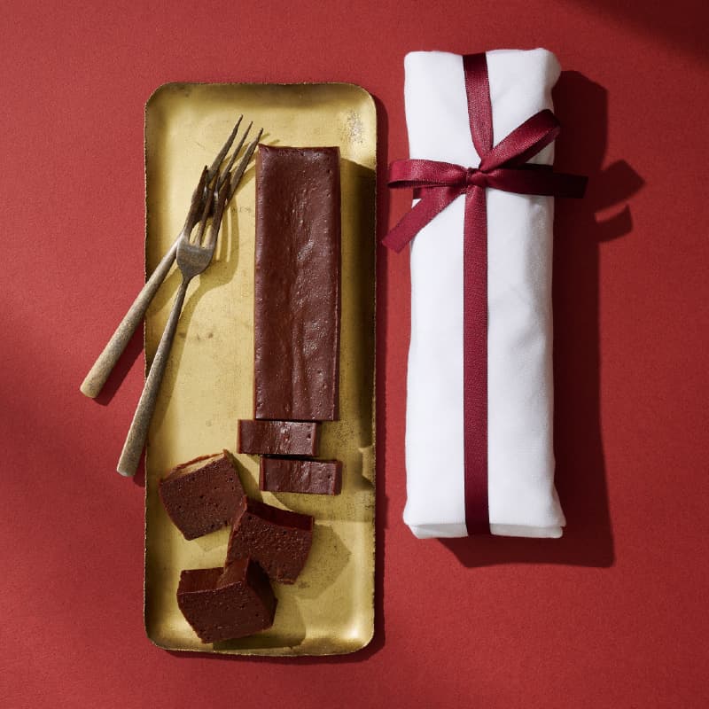 常温ではショコラテリーヌ、冷やすと生チョコ感覚、軽く温めるとフォンダンショコラと温度の違いで3つの食感が楽しめるガトーショコラ。尚且つアルコール・香料は不使用、小麦粉も一切加えないグルテンフリー仕上げです。⾼品質チョコレートが⽣み出す、上品なカカオの⾹り、濃厚でコクのある奥深い味わいが楽しめる⾄極の逸品。