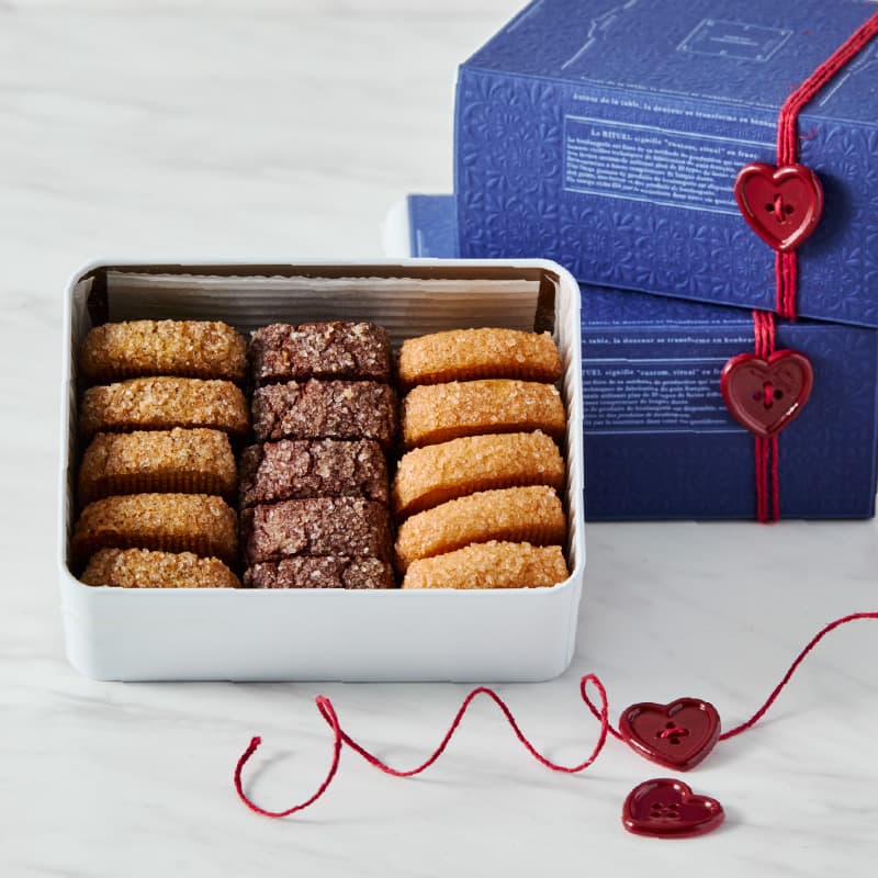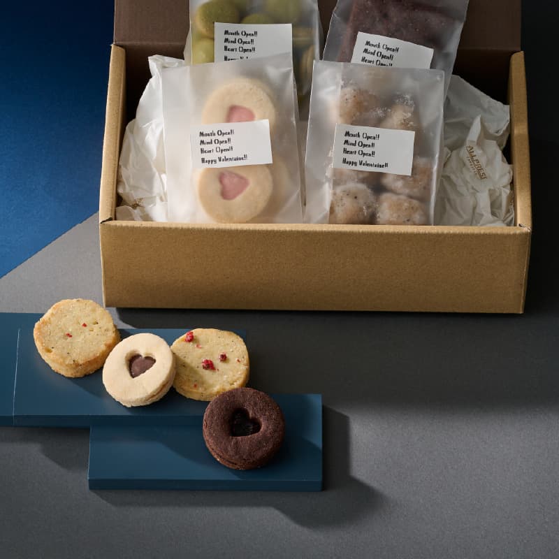 プロヴァンスをこよなく愛し、ストレートな美味しさを届け続け、焼き菓子の評価も高いラ・メゾン・ジュヴォー。2026年のバレンタインシーズンは、サロン・デュ・ショコラでも人気のガレットブルトンヌ詰め合わせが店舗でもお買い求めいただけます。ブルトンのお味はアマンドノワール、ノワゼットレ、ペカンドゥルセの3種類。ペカンドゥルセは今年の新作です。
