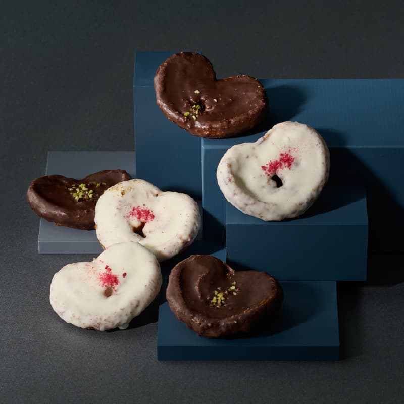 バレンタイン・ホワイトデーの限定のハート型で、ビスキュイ生地にカカオの風味がしっかりと感じられるヴァローナ社のカカオ分61%のチョコレートをコーティング。表面に施された、ジョエル・ロブションのロゴマークも気分を引きたてくれます。パッケージは個別包装。
