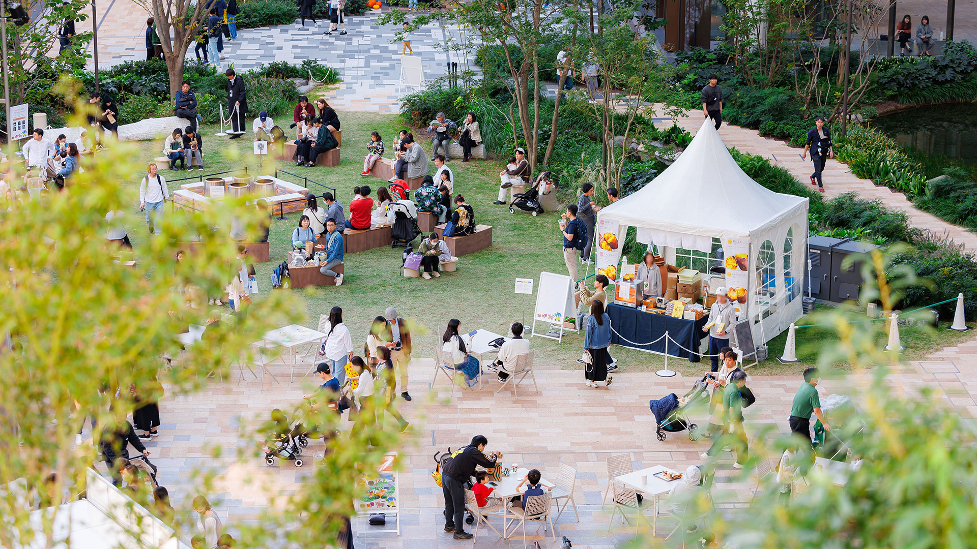 麻布台ヒルズは、人々が集う「広場」のような街。その真ん中にある中央広場では、緑に囲まれながら週末を中心にさまざまなイベントを開催します。