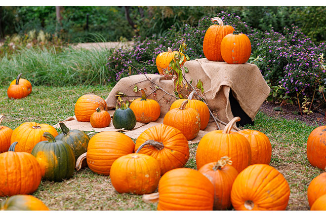大きなカボチャをナイフでカービングします。目や鼻を描いたり、模様を描いたり、自由にくりぬいてオリジナルのジャック・オ・ランタンを作ることができます。