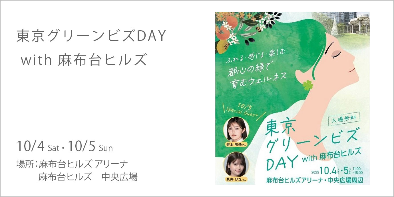 「東京グリーンビズ」は東京都が推進している緑のプロジェクト。さまざまな主体とともに、東京の緑を「まもる」「育てる」「活かす」取組を進めています。今年は都心の緑を感じられる麻布台ヒルズで、多摩産材を使ったワークショップや東京産食材のキッチンカーなど、緑の魅力を見て・食べて・触れられるイベントを開催します。