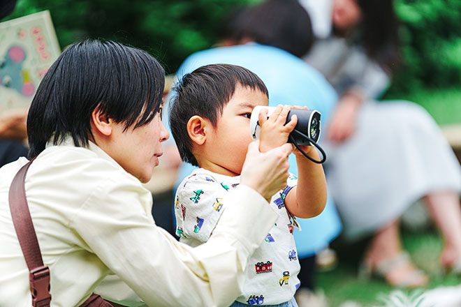 風の音、幹の肌、葉っぱの色―。見慣れた景色のなかに、昨日とは違う小さな変化が息づいています。「まちの道具箱」は、そんな発見をそっと手助けする、仲間のような存在です。ルーペやスケッチ用の鉛筆、季節の色カードなどが入っています。