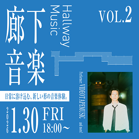 麻布台ヒルズ地下で始まる、定期開催の音楽・文芸ライブ。Vol.2はVIDEOTAPEMUSICが登場。街の廊下に響く音と声。日常に溶け込む新しい音楽体験をお楽しみください。