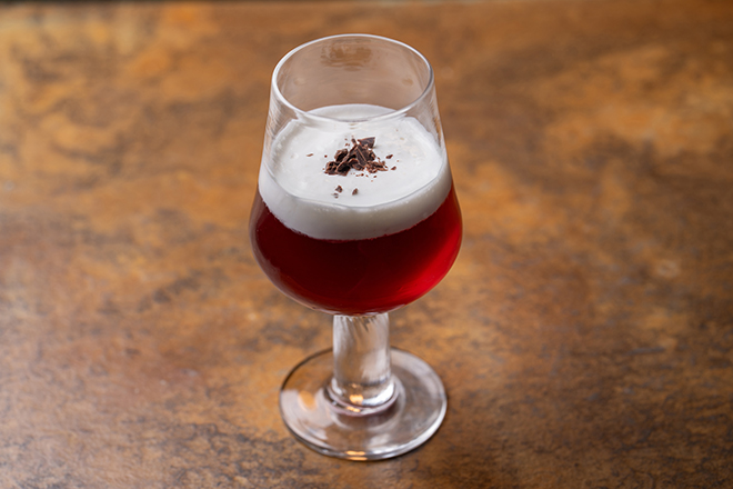 ほんのり甘いスイートベリーのハーブティーに、ホイップクリームをのせました。京本と藤野が街に遊びにいったとき電車の中から見えた、夕焼けの空をイメージ。甘酸っぱい果実の香りとともに、夢を追う若者の心に寄り添う特別な一杯です。