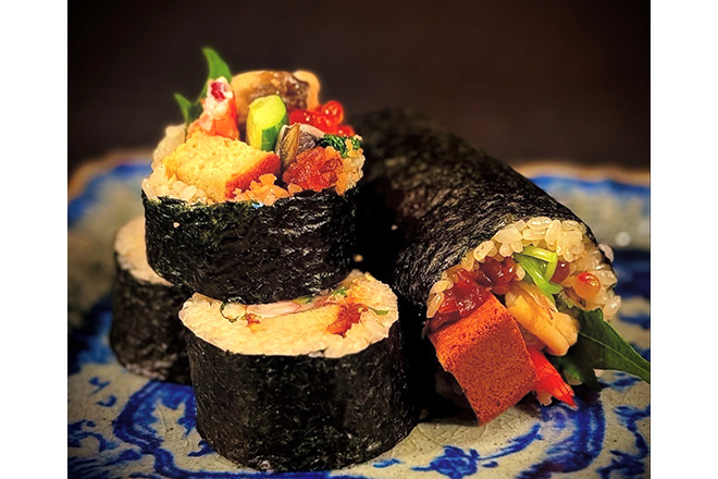 いくら醤油漬けや鰻蒲焼等豪華な具材を一つ一つ丁寧に手巻きしました。京料亭ならではの味をお楽しみいただけます。