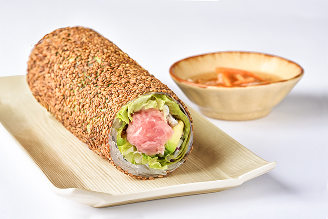 鮪やアボカド、米麺「ブン」など彩り豊かな生春巻き。特製スイートチリソースで味わう新感覚の恵方巻きです。