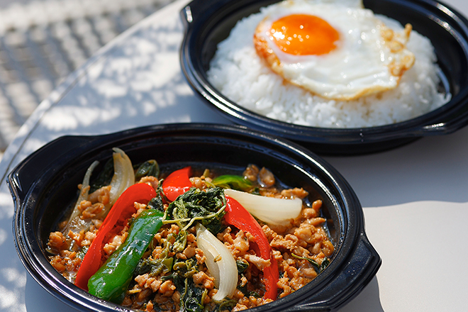 ジューシーな粗挽き鶏肉にスパイシーなソースが絡み、ごはんが進む美味しさ。ホーリーバジルをたっぷり使い、フレッシュで爽やかな香りをが存分に楽しめます。