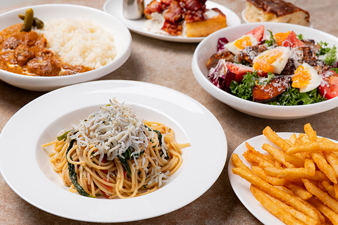 健康志向のサラダやランチにぴったりなカレー、パスタなど、多彩なメニューをご用意。