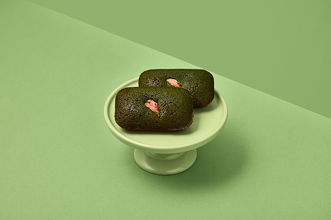 桜の花びらや桜餡、はちみつを贅沢に使った生地に、抹茶とかのこ豆を加えて焼き上げたパウンドケーキ。やわらかな甘さの中に、かのこ豆の食感が心地良いアクセントとなっています。カットすると淡いピンクと鮮やかな緑が現れ、春の芽吹きが感じられます。