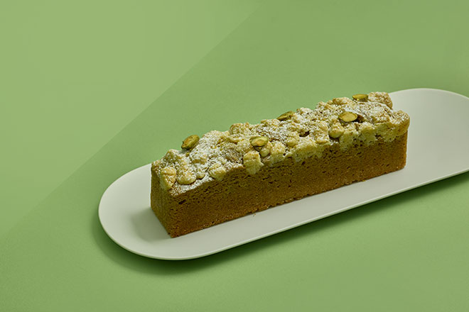 イタリア・シチリア島ブロンテ産の希少なピスターシュを練り込んだ、濃厚な味わいのパウンドケーキ。クランブルにもピスターシュをふんだんに使用した、ピスターシュ好きにはたまらない逸品です。素材の風味を存分に引き出したやさしい甘みをご堪能ください。