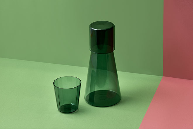 ザ・コンランショップオリジナルのタンブラーとカラフェ&グラス。タンブラーは、韓国の伝統建築に見られる繊細なタイルにインスピレーションを受けたデザイン。ハンドメイドで仕上げられたカラフェ&グラスは、実験器具から着想を得たユニークなフォルムが特徴です。