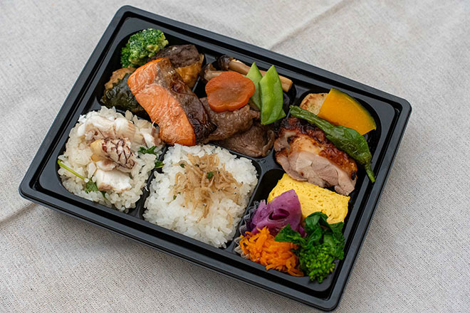 店内で丁寧に作るお惣菜と炊き込みご飯をふんだんに詰め込んだ、会食にもおすすめのお弁当です。