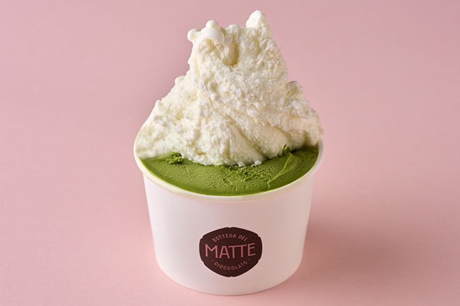 甘みと苦味の絶妙なバランスの抹茶ジェラートに人気のミルクジェラートを合わせて。
